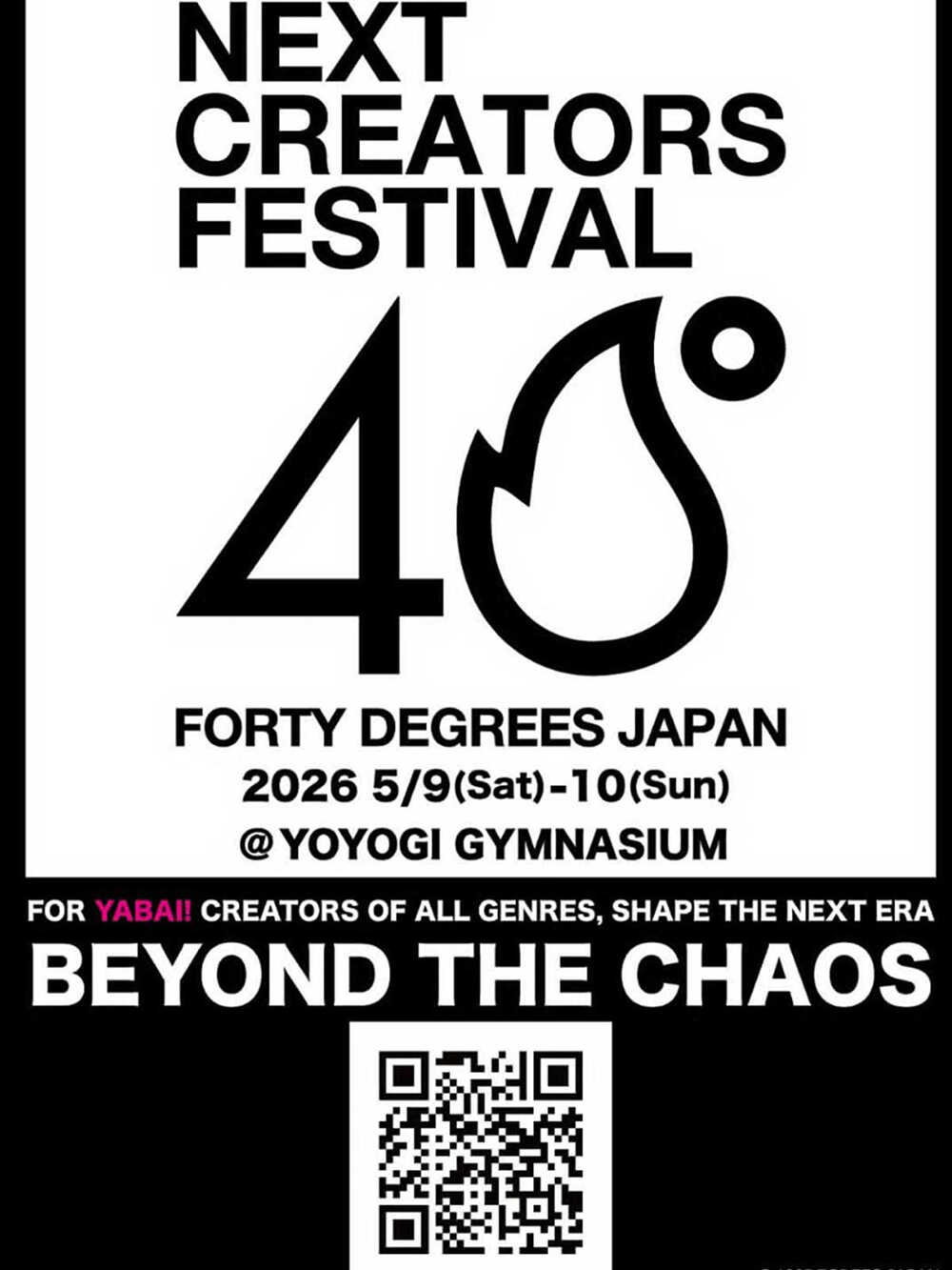 原宿のカルチャーシーンに、新たな熱が立ち上る。次世代クリエイターたちの感性とエネルギーが交差するイベント『NEXT CREATORS FESTIVAL FORTY DEGREES JAPAN』が、5月9日と10日の2日間にわたり、国立代々木競技場 第一・第二体育館で開催される。