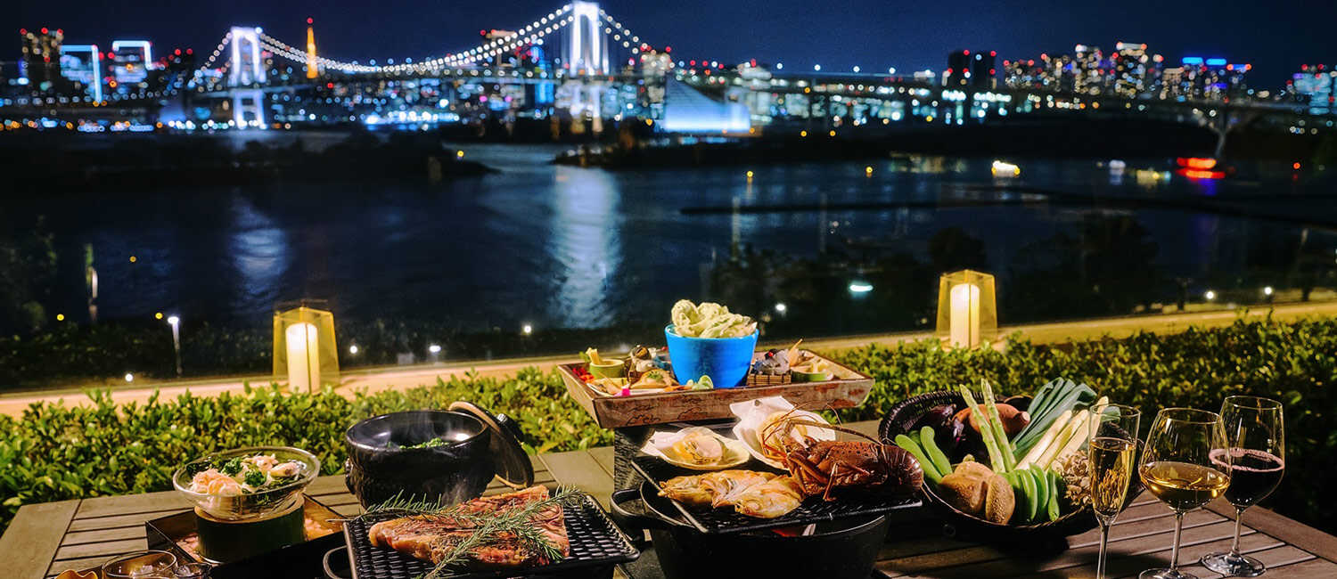 ホテルのテラス席で限定炭火焼きを味わってみたくない?新ランドマークとして、お台場に誕生した噴水"東京アクアシンフォニー"。1時間に1回行われる、そのショーを目の前で、しかも極上の炭火焼を食べながら、カップルで堪能することができる。まさにデートプランに最適な、こんなメニューがいよいよスタート…