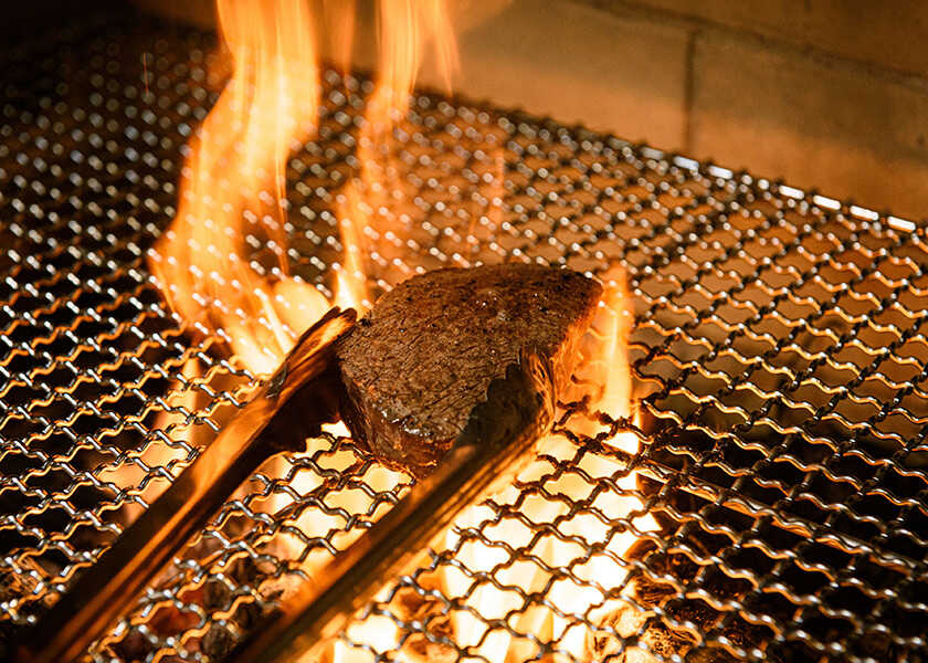 “ボランジェ スペシャル・キュベ”(3850円)は凝縮した果実味とまろやかなテクスチャーが感じられるシャンパーニュ。きめ細やかな泡立ちが食欲をかき立てるから、最初のグラスに最適だ。爽やかな酸味をもつのが“スタッグス・リープ・ワイン・セラーズ アヴィータ ソーヴィニヨン・ブラン 2023”(2600円)。複雑な旨味が魅力的で、鮑との相性も抜群となっている。料理長の田村さんの名前と掛けた“田村 生もと純米”も外せない。白麹酒母仕込みによるみずみずしくきれいな甘味とキレがあって、握りやお造りに寄り添う。“ダリオッシュ ナパ・ヴァレー メルロー 2018”(5600円)は熟したブルーベリーの果実の味わいに、重厚感も感じられる。熟したほどよいタンニンがあり、しっかりしたテクスチャーなので、黒毛和牛に合わせたい。炎のゆらぎを眺めながら、田村さんの珠玉の料理を味わえるのは至福の時間。燻香を堪能できる日本料理を、とくとご賞味あれ!