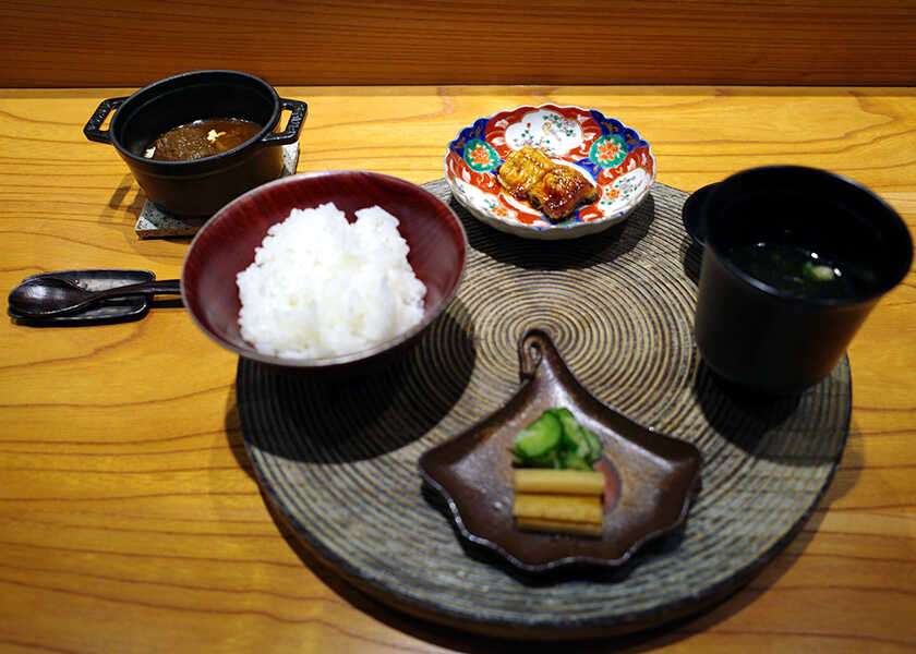 最後の“食事”も実に贅沢。新潟県のブランド米“雪椿”は、艷やかで粒が立っていて、乙な味わい。妙味に満たされた鰻のたれ焼き、馥郁たる味わいのストウブ鍋の牛タン煮込みと、“おばんざい”が充実しているのが嬉しい。左:かき氷 右:シャインマスカットとナガノパープル