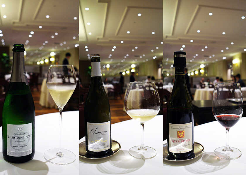 左:“クリストフ・ドゥデ・ブラン・ド・ブラン” 中:“ドメーヌ・デ・トロワ・ノワイエ サンセール ブラン 2023” 右:“ジョルジュ・ヴェルネイ コート・ロティ ブロンド・デュ・セニュール 2011”