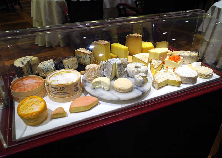 コースに“フロマージュ”(1320円~/1種1カット)も合わせると、食体験がより深まる。ワゴンには約30種類ものチーズが乗せられていて実に圧巻。あきる野市のシェーブルチーズ、青梅市のブルーチーズなど東京産チーズも味わえるのが嬉しい。ハチミツ、ナッツ類、ドライフルーツ、ライ麦パンが添えられるので、お好きなコンビネーションでどうぞ。