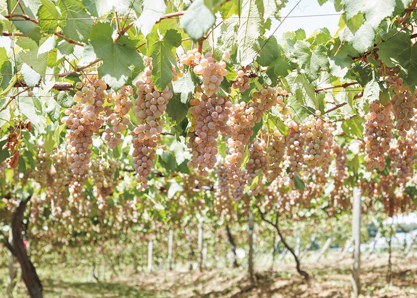 甲州の畑と醸造棟、熟成庫を見学する“フロムファーム登美の丘ワイナリーツアー”。2種のテイスティングも含まれる80分コースは3000円。眺望台の見学も加わる“プレミアム”コースは4種のテイスティングが含まれ、120分で8000円。11月8日(土)には“収穫感謝祭 2025”を開催。