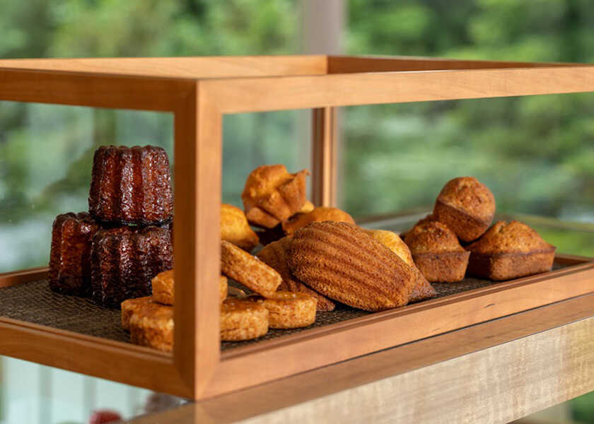 焼き菓子だけでも、ホワイトバルサミコとトンカ豆を加えた全粒粉のマドレーヌ、ヘーゼルナッツを合わせたフィナンシェ、アニス風味のリキュール・パスティスを使ったフランス伝統菓子の「トゥルト・ピレネー」など幅広いラインナップ。