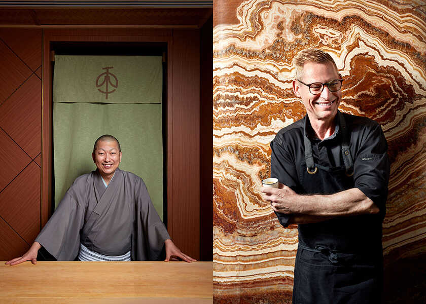 ここで監修を務めるのは、西田和峰さんとエマニュエル・ストルーバントさん。西田さんは、大阪近郊の関西地方で生まれ育ち、17歳で鮨職人として料理人のキャリアをスタートさせた。その後、シンガポールの鮨店〈小康和(Shoukouwa)〉でエグゼクティブシェフを務めてミシュランガイド2つ星へと導く。ベルギー出身のエマニュエルさんはフランスで修業を積み、クアラルンプールに拠点を移し、1999年に“マレーシア最優秀外国人シェフ賞”を受賞。フレンチレストラン〈サン・ピエール(St Pierre)〉と鮨店〈小康和(Shoukouwa)〉で2つ星を獲得。