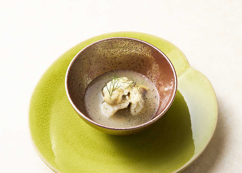 シェフを務める宗定和輝さんは岡山で生まれ育ち、地元の調理師学校を卒業した後に〈ウェスティンホテル淡路〉で料理人としてのキャリアをスタート。〈神戸北野ホテル〉でクラシックフレンチを学び、フランスの星付きレストランではフランスのM.O.F.(最優秀職人章)をもつシェフから薫陶を受けた。帰国後は、ミシュランガイド1つ星〈ラルジャン(L'ARGENT)〉で、シェフの加藤順一さんから学んだ。
