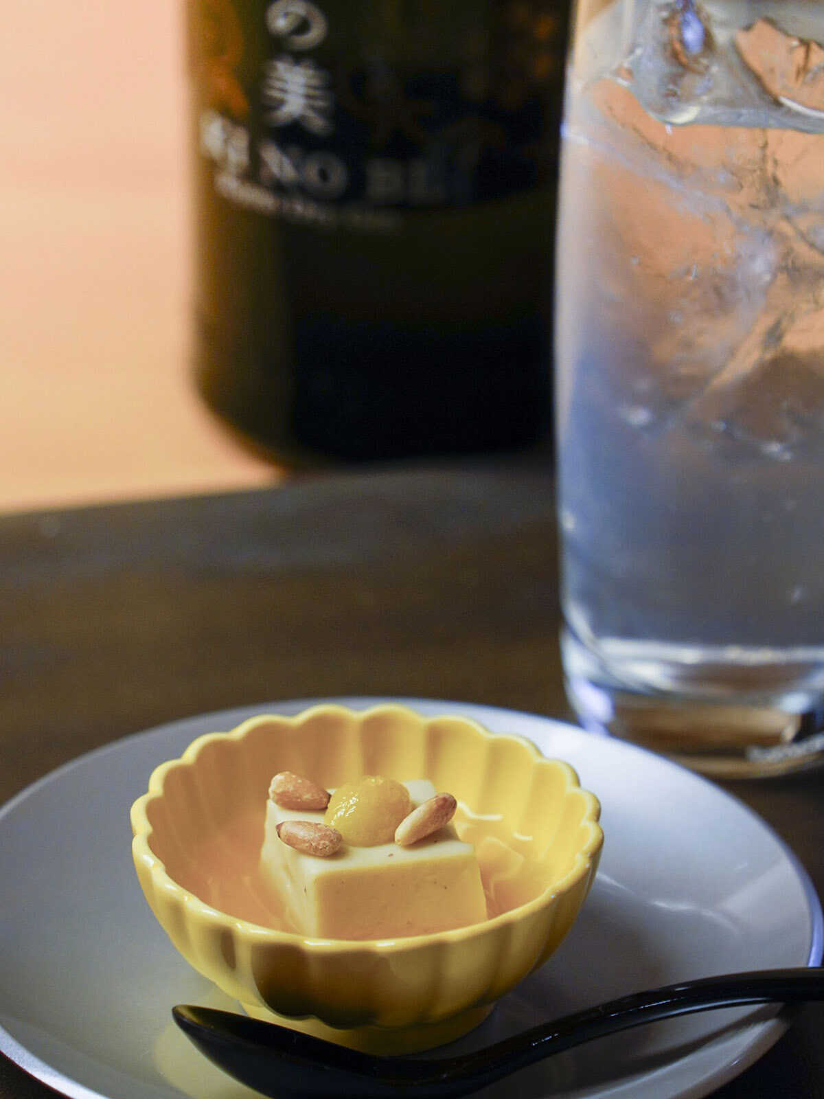取材時のメニューから数品と、合わせた酒を紹介していこう。彼女と「今宵は、“季の美”と“季のTEA”を食事に合わせて楽しもう!」と盛り上がり、“季の美 京都ドライジン”のジントニック(1800円)で再び乾杯。