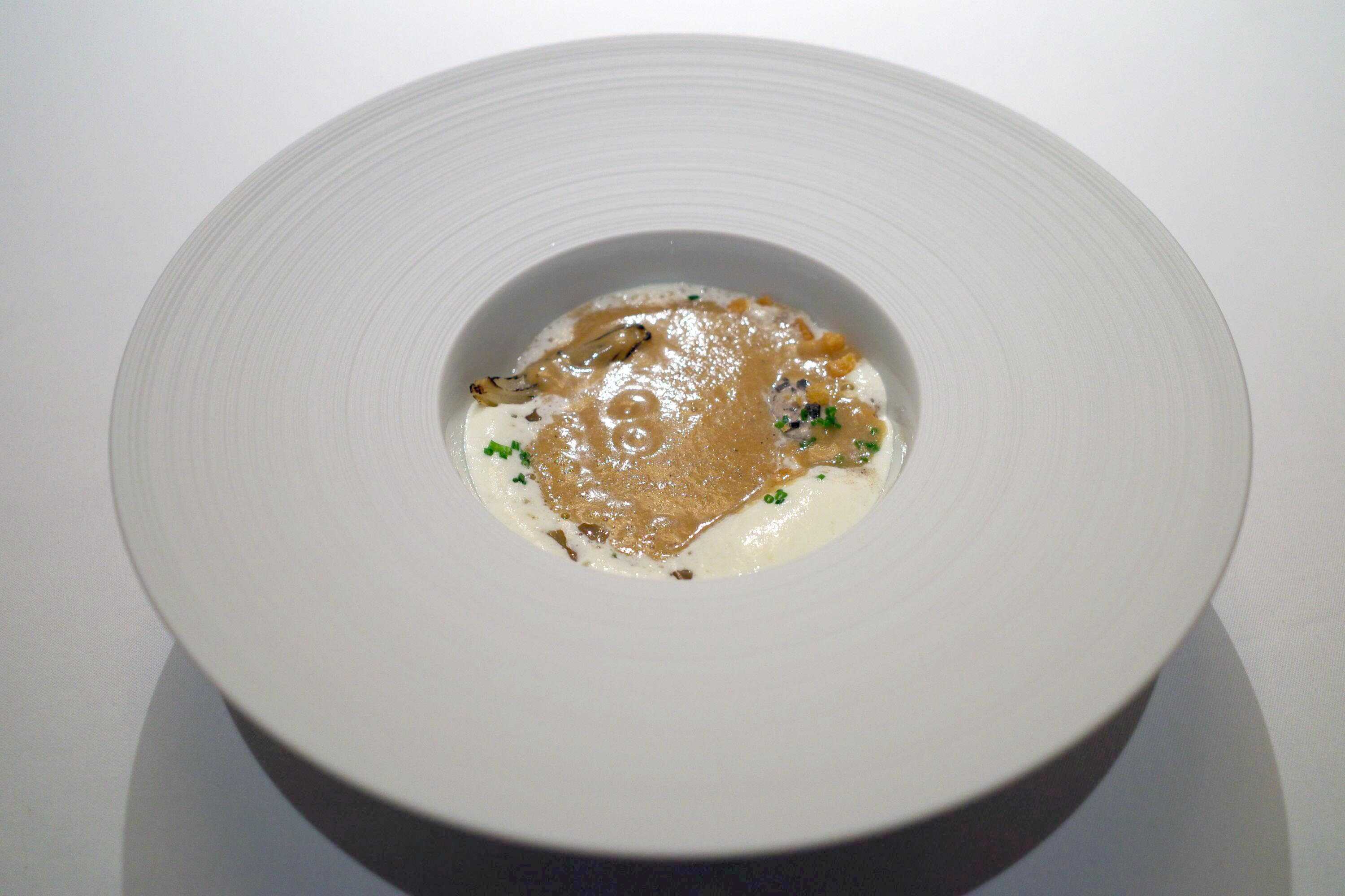 ・玉葱のスープ 雲のように仕上げた熟成コンテチーズ 黒トリュフのクリーム(1)
