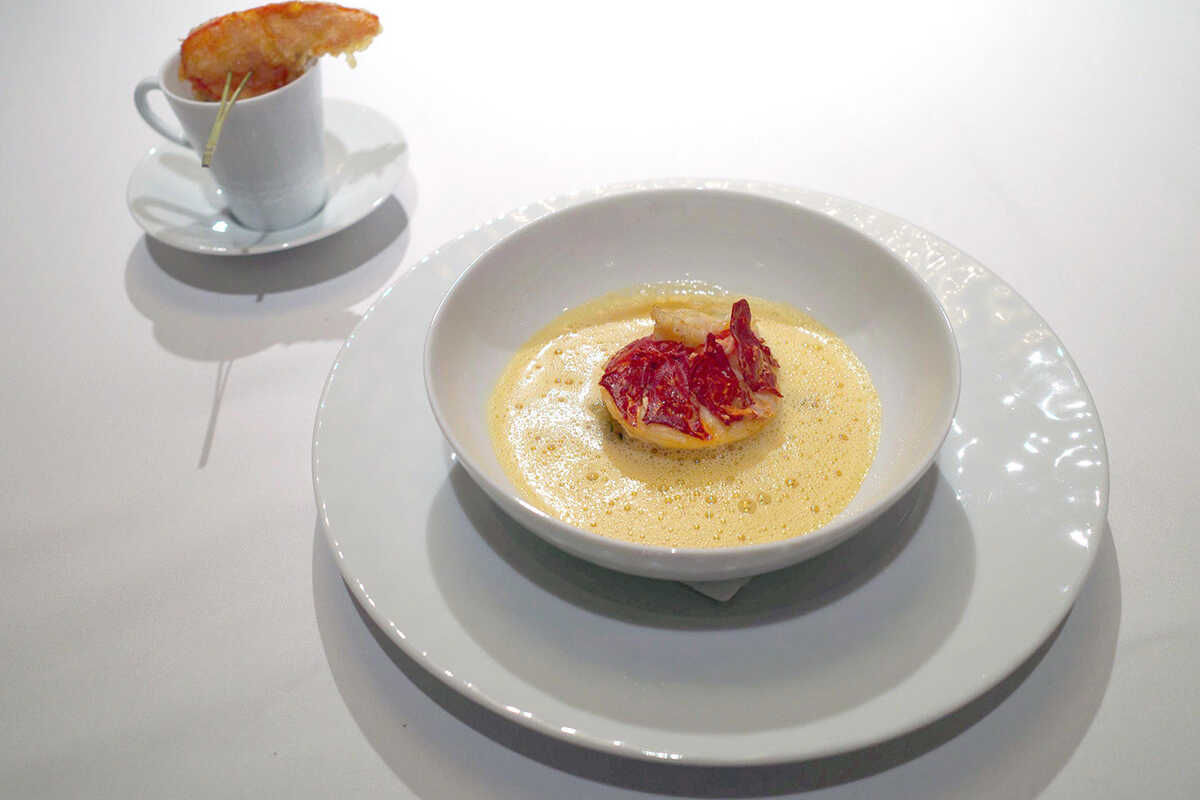 ラングスティーヌをシトロンキャヴィアで飾って エスプレットスープのラビオリと一緒に