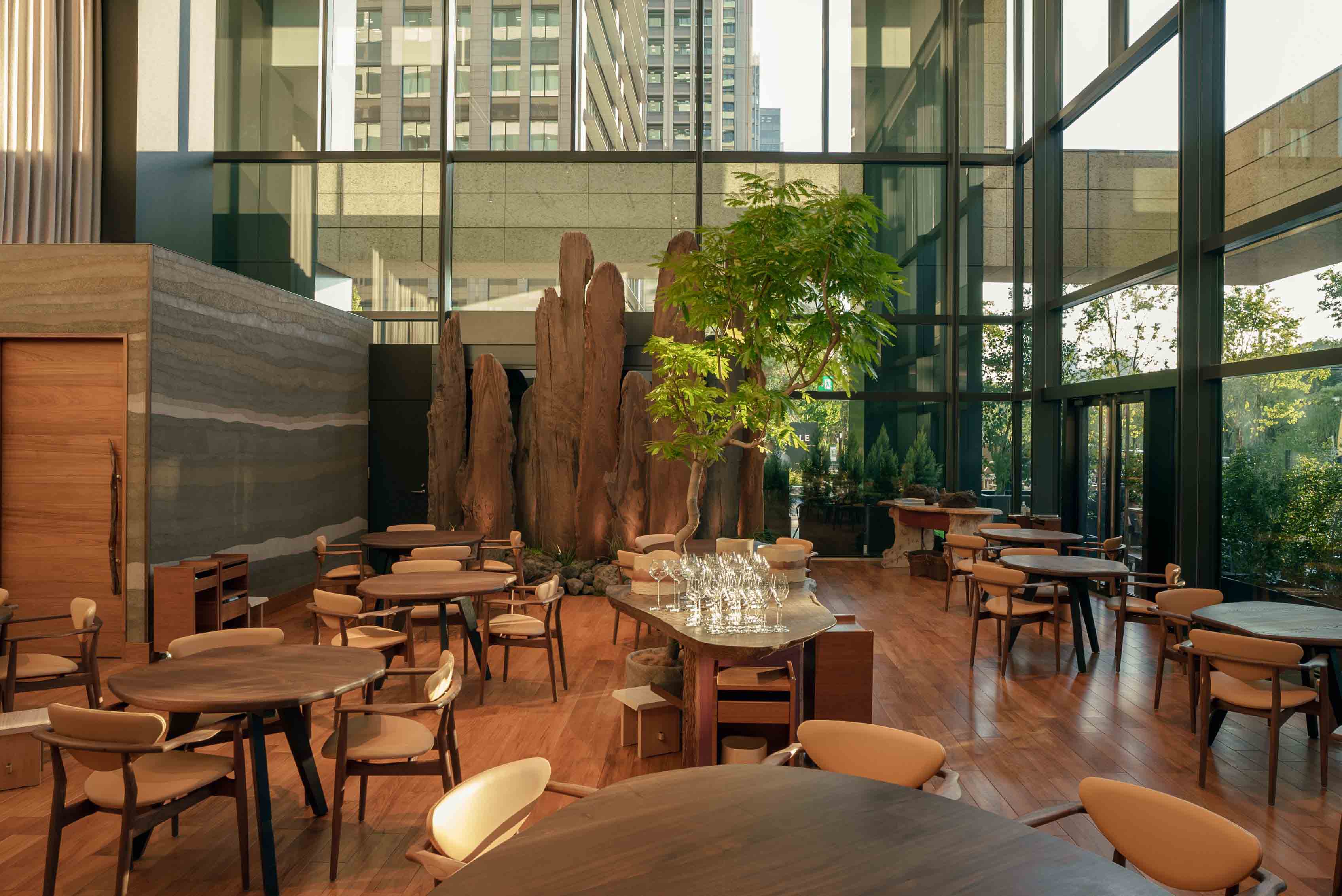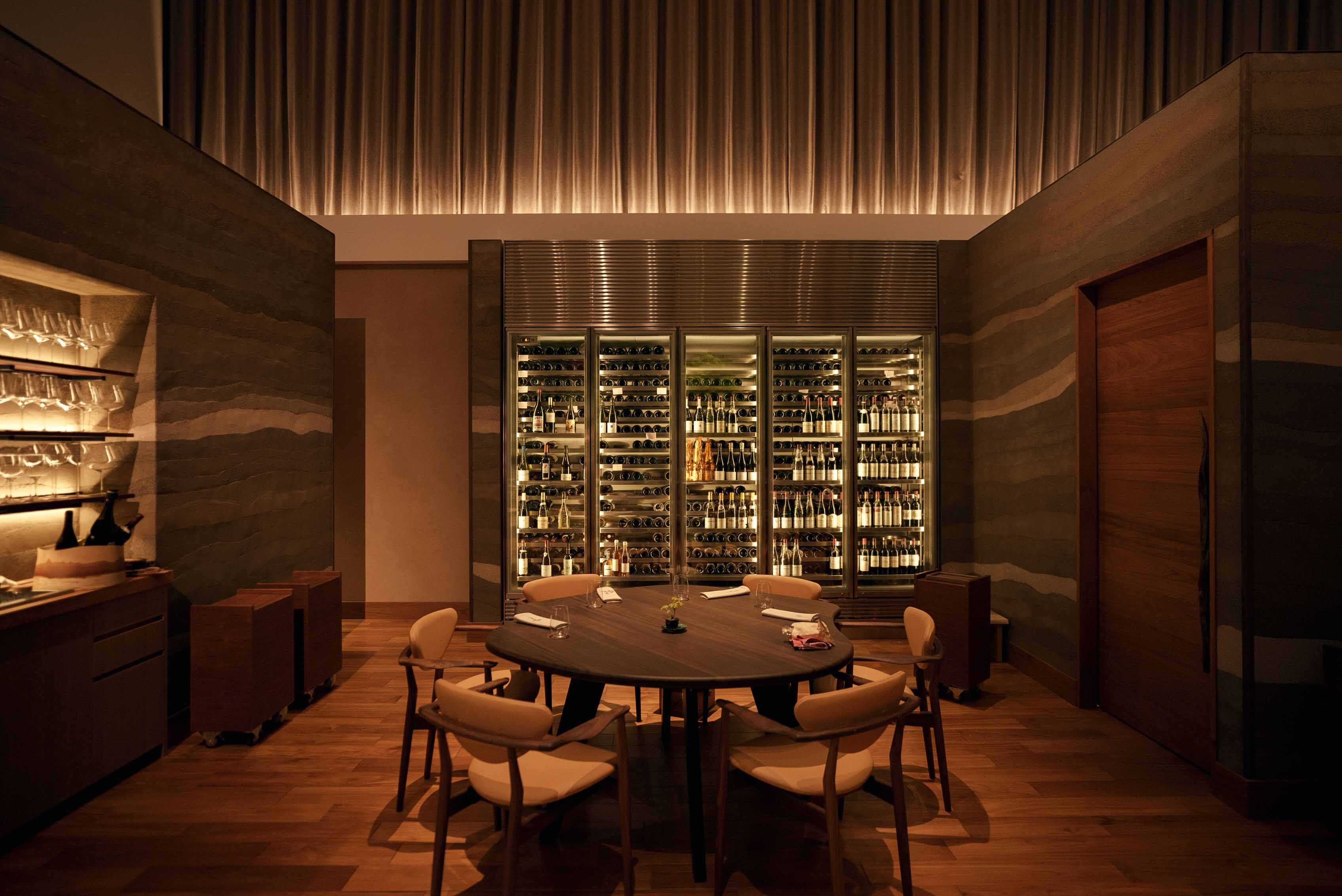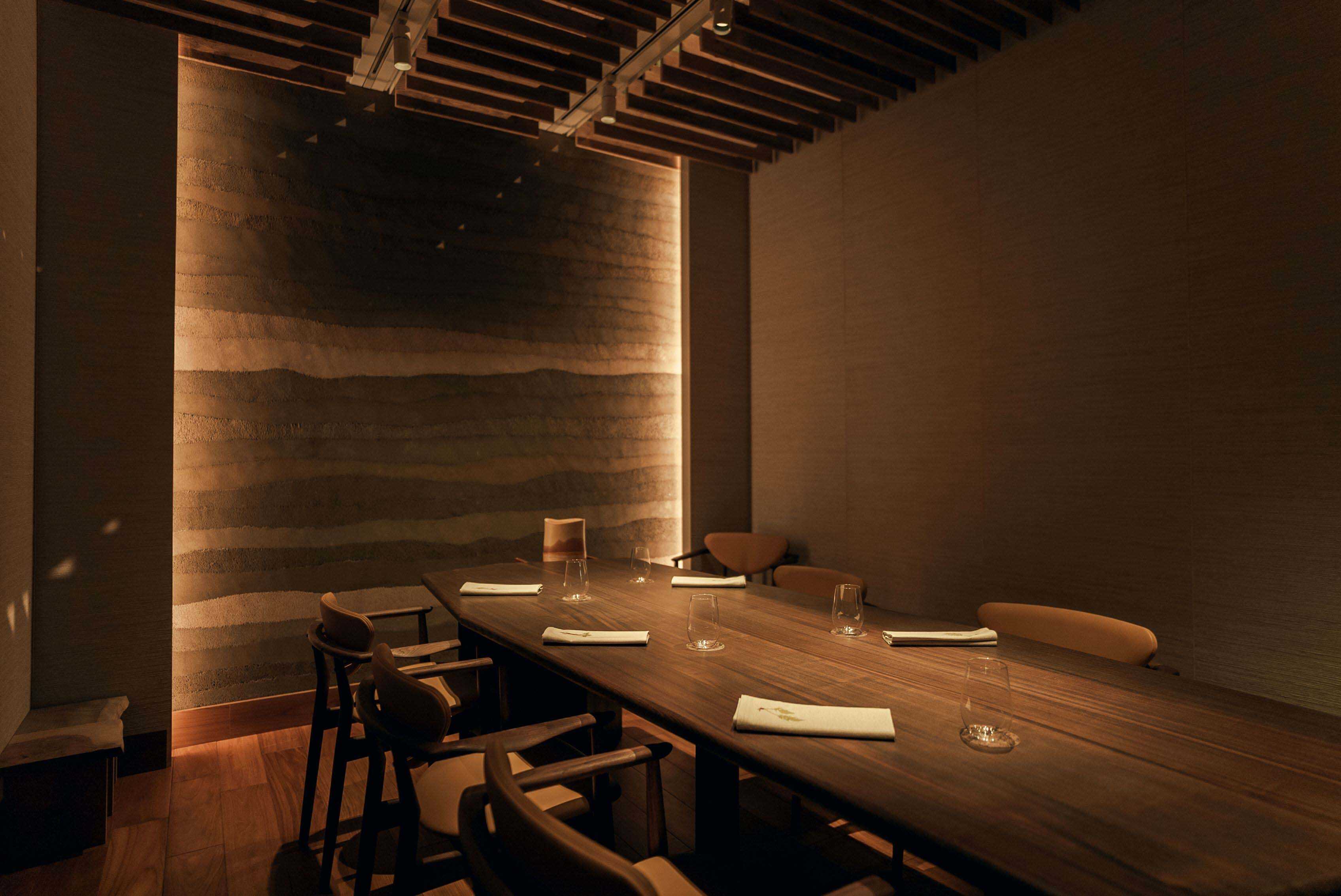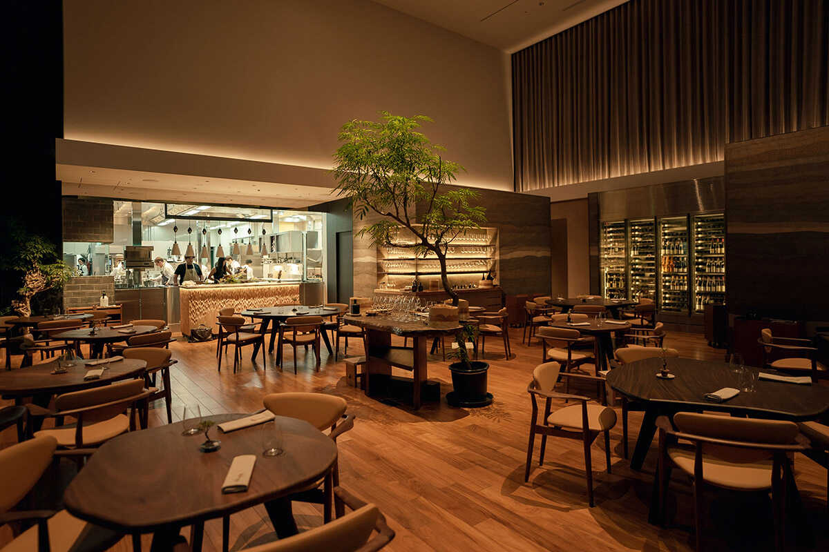 ダイニングは優しい木目調の造りで、曲線的なデザインが心を和ませる。オープンキッチンになっていて、宮本氏をはじめとした料理人たちの華麗な手捌きも鑑賞できるのが嬉しい。個室も1部屋設けられているので、利用シーンは広がる。
