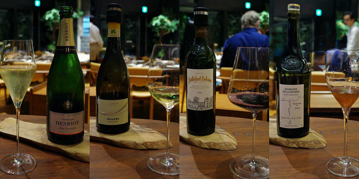 宮本氏の創造的な料理にぴたりと寄り添うワインペアリング(2万6400円)も体験したい。“アンリオ シャンパーニュ ブリュット・スーヴェラン”は、最初に提供されるシャンパーニュ。淡いレモンゴールドの色調で、ヘーゼルナッツの香り。厚みとエレガンスを両立しているから、4品のタパスのどれにもよく合う。