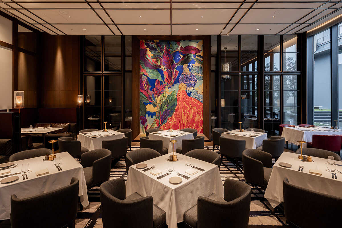 〈ファイブ - グリル&ラウンジ〉は、プライベートダイニングルーム1室12席を含むダイニングエリア116席、カウンター15席を含むラウンジエリア72席と、全体的にゆったりとした作り。落ち着いた空間の中で美食を味わうにはうってつけの環境になっている。