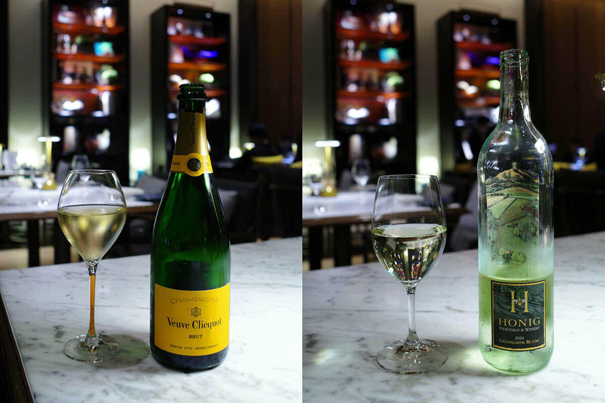 “ヴーヴ・クリコ イエローラベル ブリュット”は黄金色が美しいシャンパーニュ。白桃や洋梨のアロマがあり、ピノ・ノワール主体のしっかりとした骨格があるので、魚料理まで万能にマリアージュする。“ホーニッグ・ヴィンヤード&ワイナリー ソーヴィニヨン・ブラン 2024”は、レモングラスやジャスミンが華やかに立ち上がる白ワイン。ハーブの香味が広がり、酸味のキレがいいので、魚に抜群の相性を示す。ほかにも、地元で造られたどぶろくをベースにしたカクテルなどもペアリングされるので、お楽しみに。