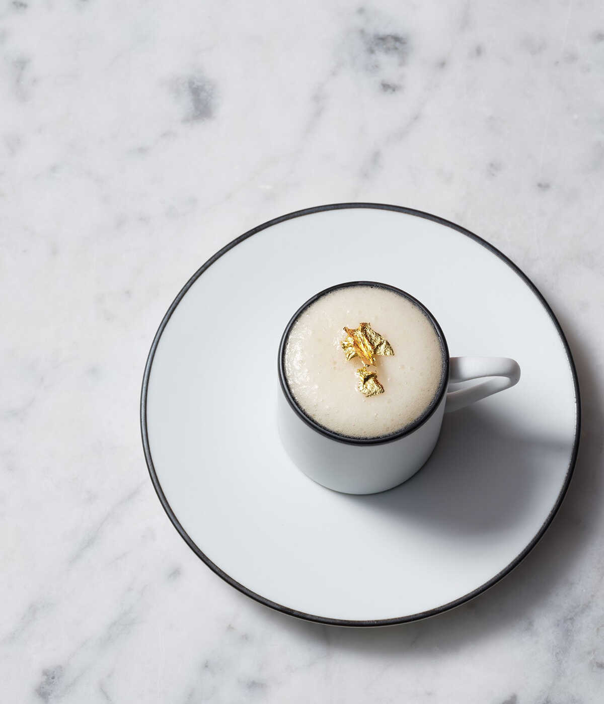 ・香箱ガニのコンソメスープ カプチーノ仕立て 金沢金箔添え