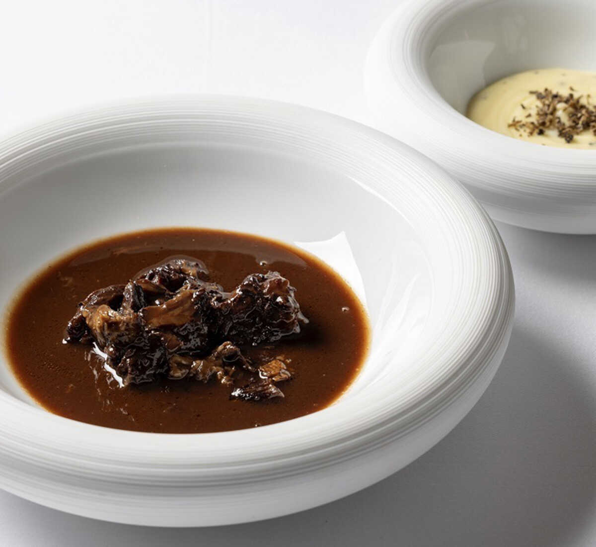 “牛テールの赤ワイン煮込み トリュフ風味のジャガイモのピュレ”