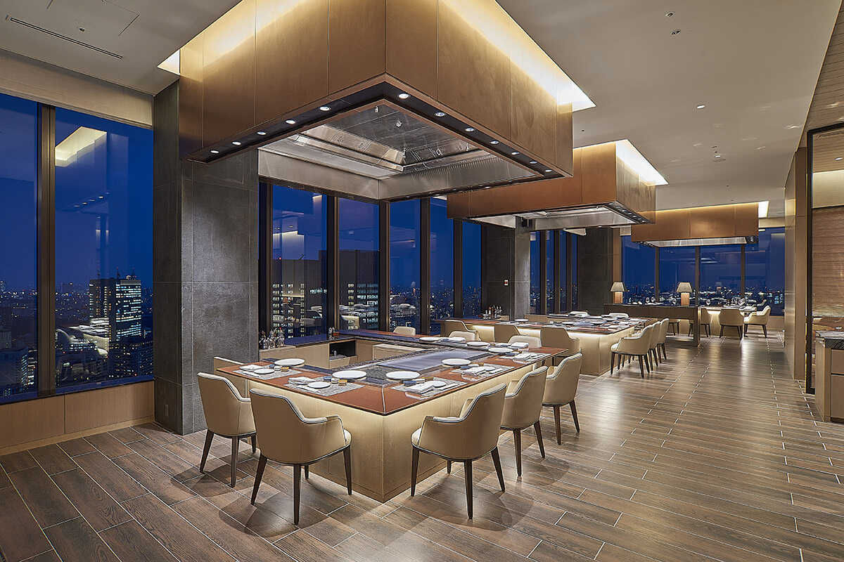 〈オークラ東京〉で唯一最上階にあるレストラン〈さざんか〉。絶景とともに、伝統の鉄板焼をご賞味あれ!