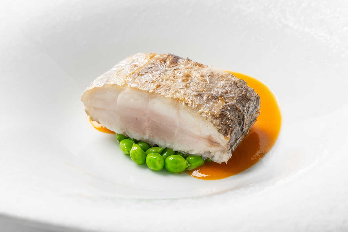 魚料理の“タチウオ カチュッコ ソース”は、愛媛県産の太刀魚を炭火で香ばしく、かつ中心部はロゼに焼き上げた。地元産の岩魚を用いたカチュッコ仕立てのソースは、パンの代わりに米でとろみをつけ、軽やかでありながらも表情豊かな味わいに仕上がっている。