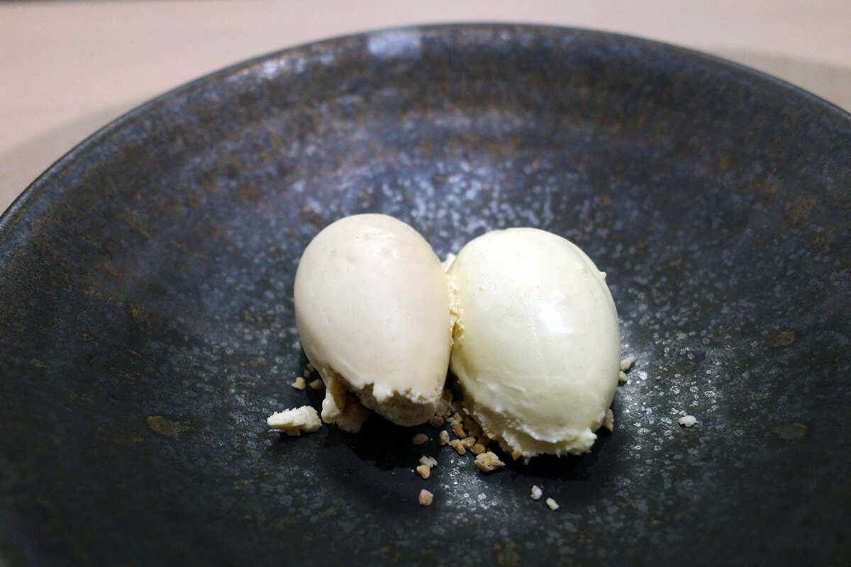 デザートは、5種類のうちから選べる自家製の“ジェラート2種”(1100円)が楽しい。プラリネ、マスカルポーネ、バニラ、トリュフ、アールグレイとバラエティに富んでいるので、そのときの気分で選んでみて。