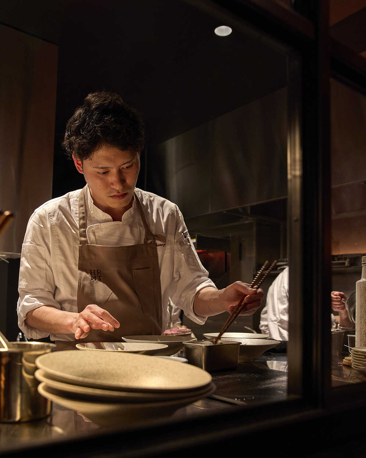 〈エイチアールエムティー ステージ(HRMT STAGE)〉は、長年培ってきたレストランの伝統を見つめ直して再構築。次の時代へ継承するためのステージとして位置づけるフランス料理店だ。店名は会社名〈Hiramatsu〉から抽出した文字をもとに、“調和(Harmony)”、“再構築(Restructure)”、“瞬間(Moment)”、“伝統(Tradition)”を取り合わせた。