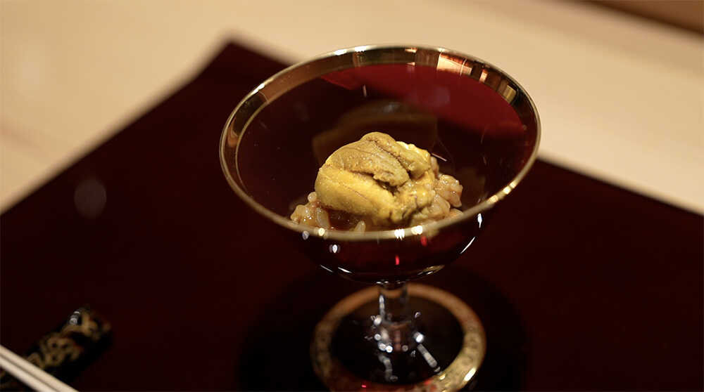 『雲丹パフェ』は濃厚な雲丹ソースをシャリに絡め、さらに雲丹を重ねた贅沢な逸品