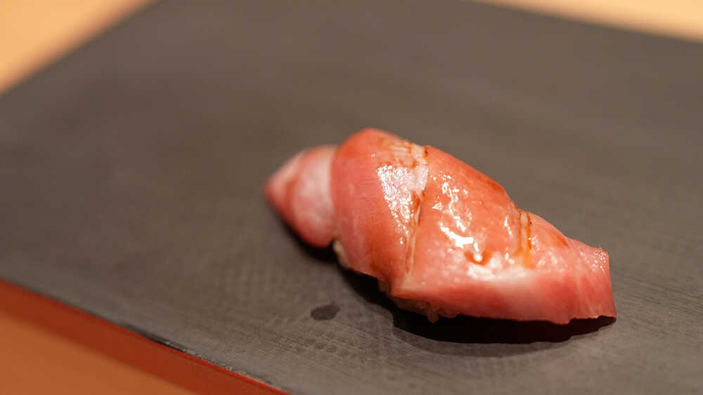 豊洲市場から届く厳選された旬魚を、20年以上の経験を持つ店主が丁寧に仕立てる。江戸前の伝統技法を重んじながらも、火入れや熟成など新しい感覚を織り交ぜ、素材の持つ旨みを最大限に引き出す。季節の移ろいを映す『おまかせコース』は、訪れるたびに新しい発見があるはず。