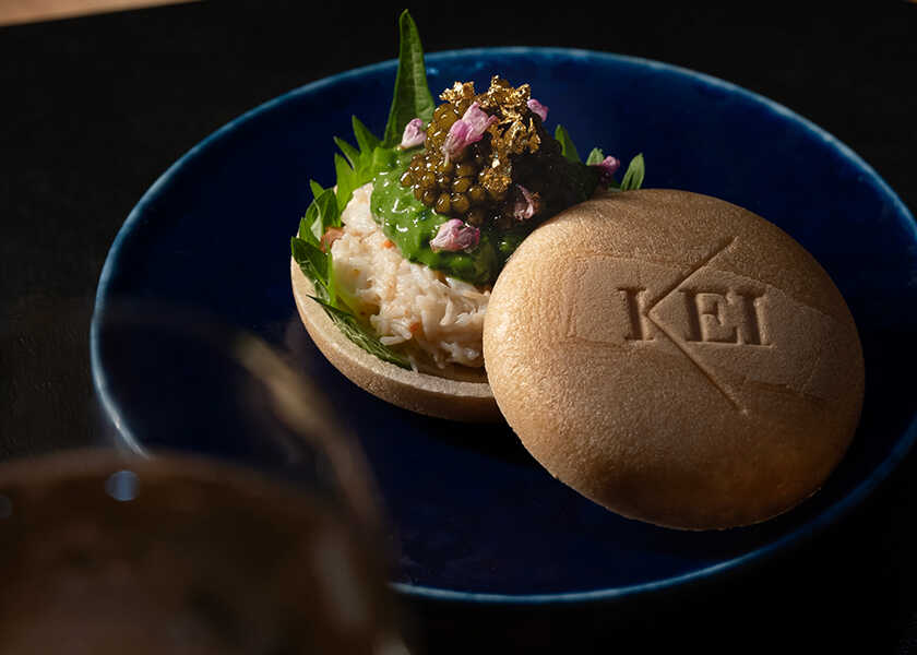 話題のスポット〈虎ノ門ヒルズ ステーションタワー〉の最上階49階にあるレストランといえば〈ケイ・コレク ション・パリ(KEI Collection PARIS)〉。フランスのミシュランガイド3つ星を6年連続で獲得する小林圭さんが監修した“グリルガストロノミー”とあって、話題を席巻した。シェフを務める久保雅嗣さんが旬の食材とグリルの技術を融合させた、珠玉のクリスマスディナーを用意している。