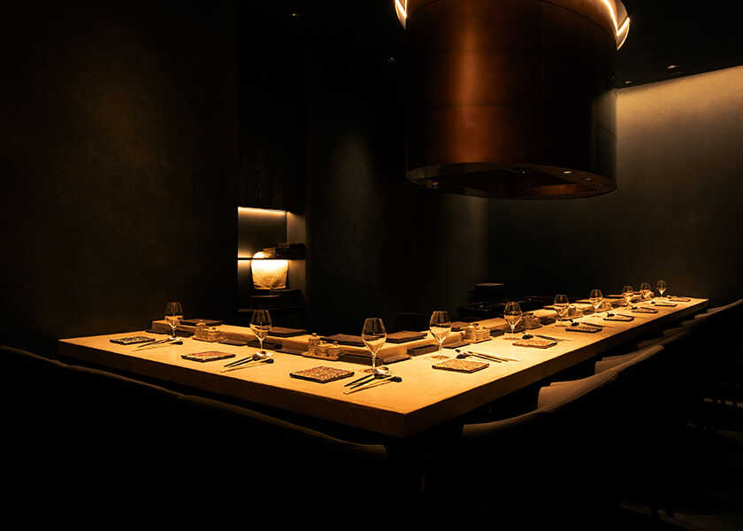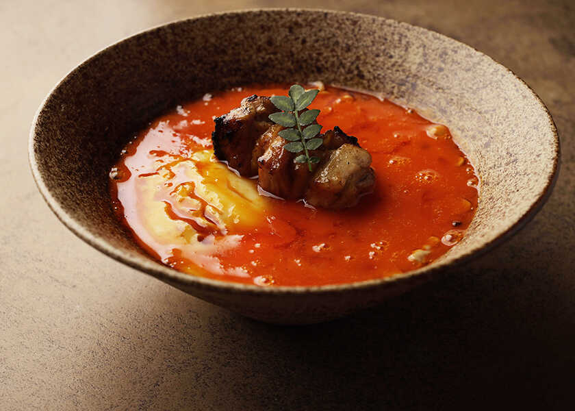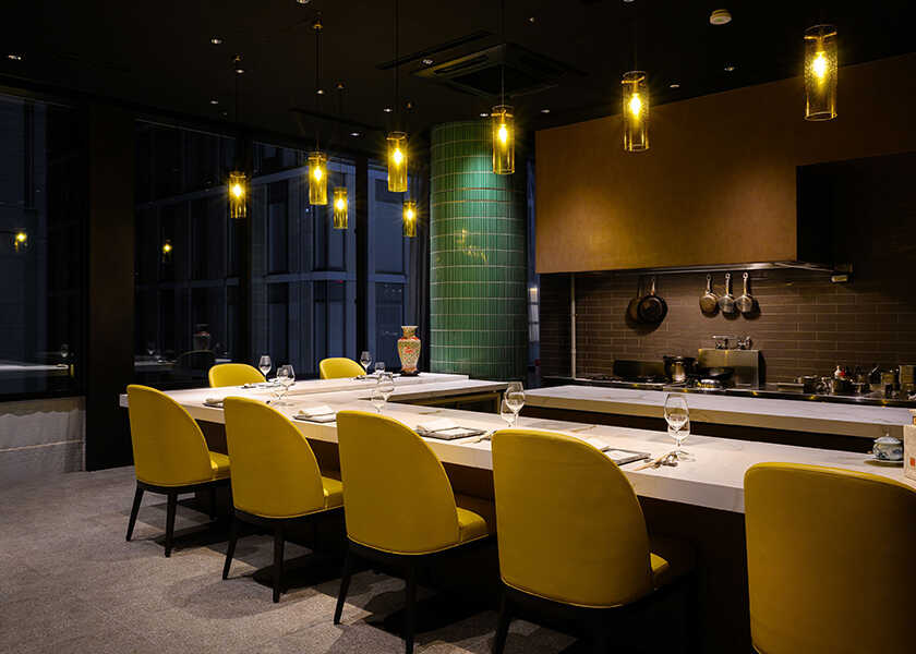 中国料理〈銀座 ルージュ(Rouge)〉はカウンター席が中心の臨場感あふれる中国料理店。会員制クラブ〈シティ・クラブ・オブ・トウキョウ(CITY CLUB OF TOKYO)〉の一角を特別に開放しているとあって、さっそく美食家たちがこぞって足を運んでいる。料理長の沖倉康志さんが、丁寧な仕込みと調理によって、繊細な味わいと鮮やかな香りを紡ぎ、美しく盛り付ける。