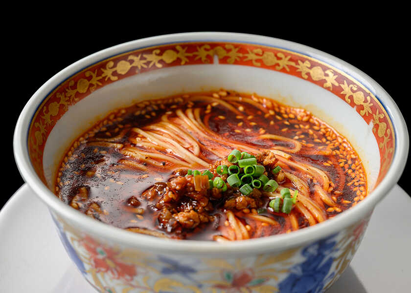 “料理長おまかせ特選コース”(3万5000円)は、高級中華をとことん堪能できる8品の構成。“銀座Rouge特製の北京ダック”は、見事なまでにパリパリに仕上げた皮がたまらない。“フカヒレ上海風煮込み 土鍋ご飯”は、大きなフカヒレの姿煮で、濃厚な餡がフカヒレによく絡む。土鍋ご飯と合わせて食べると、旨味が何倍にも増す。“和牛ひれ肉のロースト”は、ひれ肉がやわらかく、その和牛香も豊か。その時々によって変えているソースによって、和牛の旨味を引き出している。食事は“とっても辛い辣油香る四川風担々麺”、麻婆豆腐ご飯、牛肉炒飯、チャーシュー麺から選べるので好みをチョイスして。紹興酒はもちろん、ワインも品揃えが豊富。