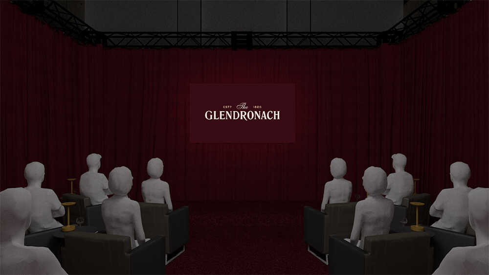 本イベントの核となるのは、1公演20席の特別な空間で催されるシアター型インスタレーション。光、音、映像、そして物語が交差する空間の中で、来場者は“ウイスキーが熟成していく時間”を追体験する。テーマとなるのは、グレンドロナックの象徴とも言えるシェリー樽熟成。ペドロ・ヒメネス樽とオロロソ樽がもたらす香味の変化、時が積み重なることで生まれる奥行き。そのすべてを、理屈ではなく感覚で理解させてくれる構成となっている。