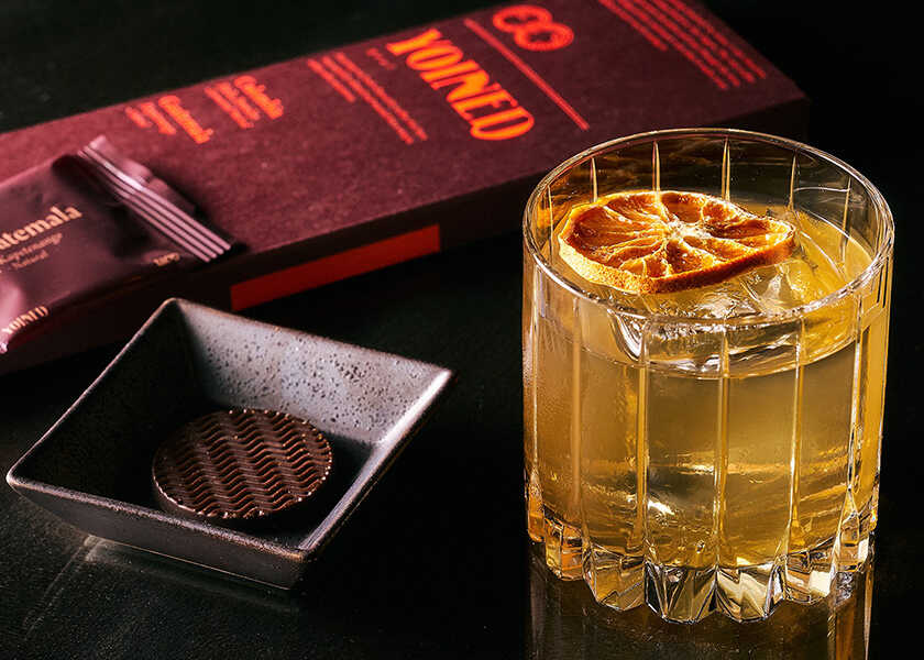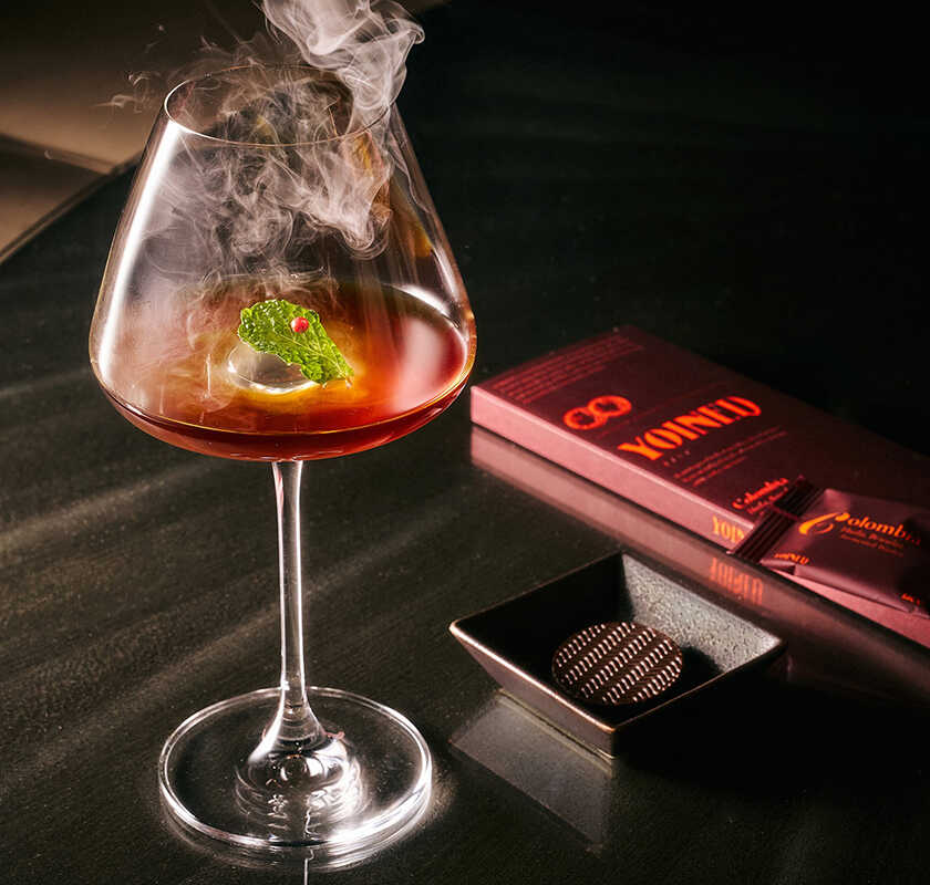 クラシックなバーボンベースをあえて外し、マッカラン12年とアマロを組み合わせた、世界的に有名なブールヴァルディエのツイスト。オレンジやキャラメル、ナッツの余韻を感じる“YOINDO”の香りに浸りながら、トリュフならではの高級感あるインパクトを、相性の良いスコッチとともに楽しめる大人のためのカクテル。