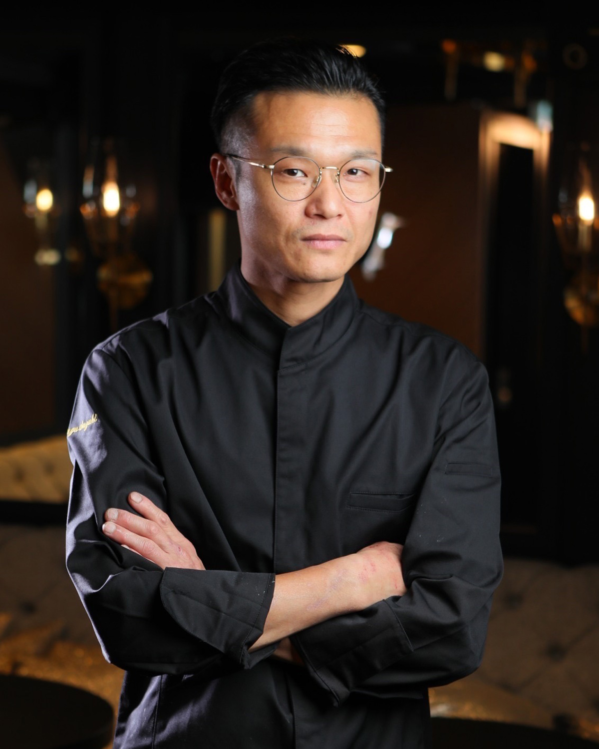 鈴木シェフは15歳で料理の世界に入り、2005年20歳で渡仏。フランスの一つ星レストランで研修後、都内フレンチレストランでの修行を経て、2008年に再渡仏。星付きレストラン〈ステラマリス〉や〈ジェラール・ベッソン〉〈ラ ペルーズ〉などで3年間の経験を積み帰国。2013年より〈ケイスケマツシマ〉副料理長、2015年ヘッドハンティングによりグローバルダイニング入社。薪焼きレストラン〈リグニス〉の立ち上げなどを経て、2021年より執行役員総料理長。3年連続で『ミシュランガイド東京』一つ星を獲得している。