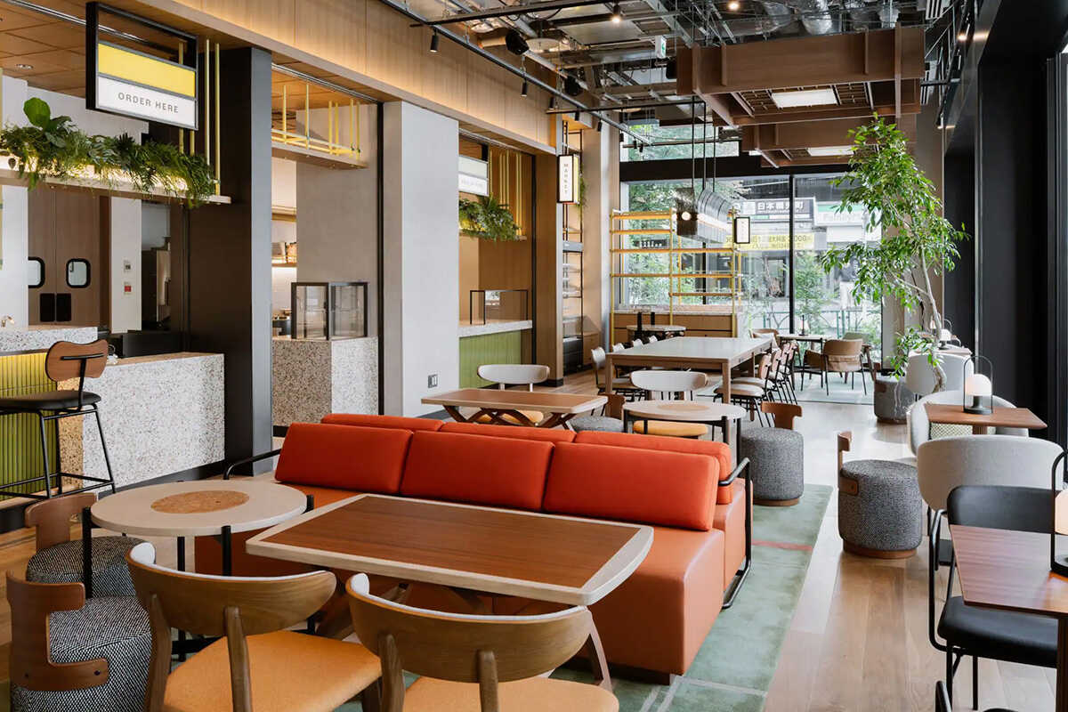 ハイアットホテルの中でも遊び心がある雰囲気が特徴の〈キャプション バイ ハイアット 兜町 東京〉。ホテルの中でも、気軽に立ち寄ることができるのが1Fにテラスも構えるカフェ&ダイニング〈トークショップ〉だ。カラフルな店内はリビングのように居心地がよく、ワイワイと友人や仕事仲間とおしゃべりを楽しめる場所。定期的に開催される音楽イベントなどは、飛び込みで参加するのだってOK!