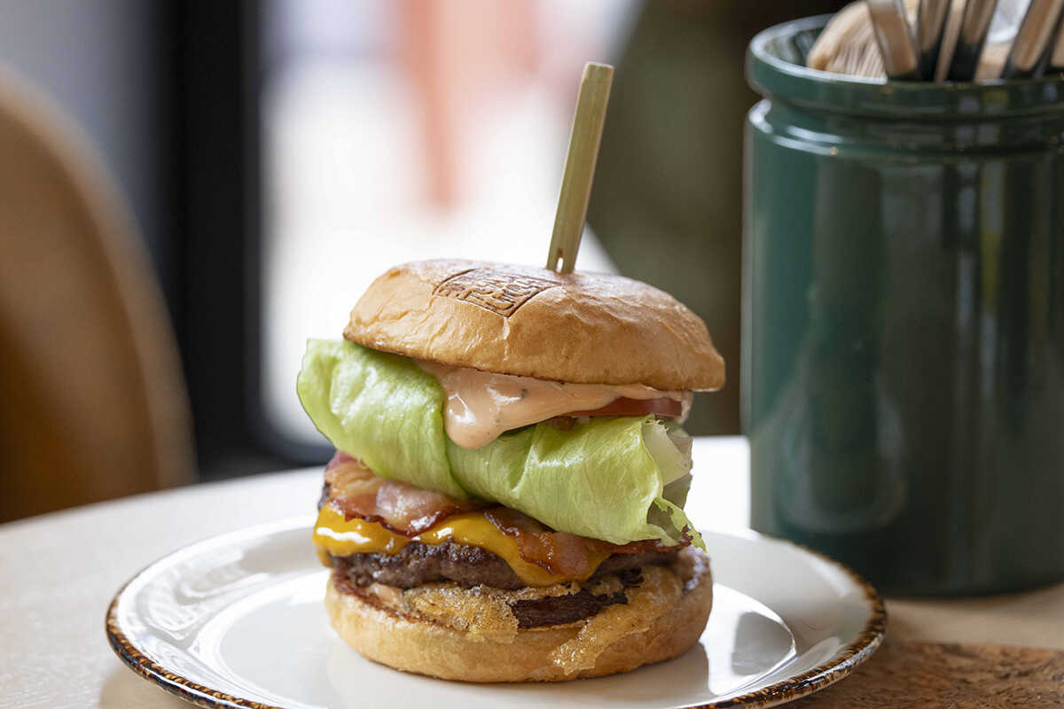 そんな〈トークショップ〉で人気のフードといえば、なんといってもハンバーガーだ。カリフォルニア出身のシェフが手掛けるバーガーは、もちろん本場のようにボリューム満点。マンスリーでいろんなバーガーを出すなど、飽きのこないバーガーを提供してくれる。といっても、いつでもオーダーできるシグネチャーバーガーがあると安心する。しかも今回は、東京だけでなく、〈キャプション バイ ハイアット なんば 大阪〉のシグネチャーも食べられるという、期間限定コラボ企画を実施しているから、行かないなんてもったいない!