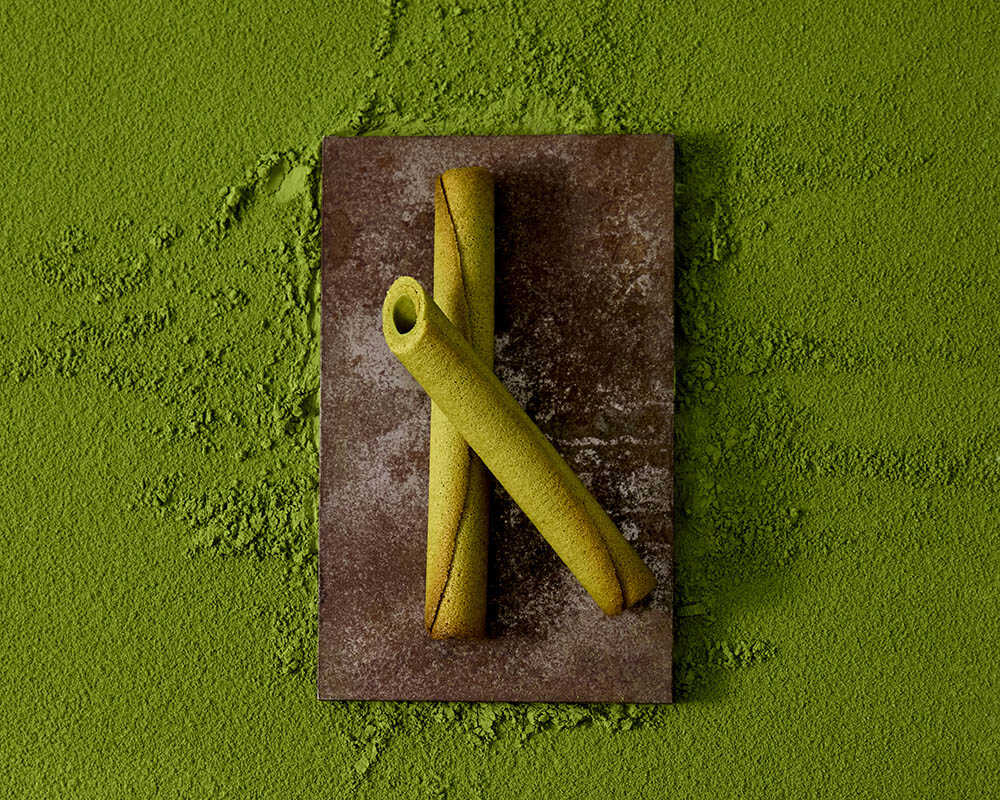 このオリジナル宇治抹茶を、『シガール』の繊細な生地とどう調和させるか。その“分岐点”を探り当てたことで、抹茶の甘みとほのかな苦みがバターのコクを引き立て、後味は驚くほど軽やかに。くるりと巻かれた抹茶生地の中には、抹茶チョコレートが忍ばせてあり、一口ごとに豊かな余韻が広がる。