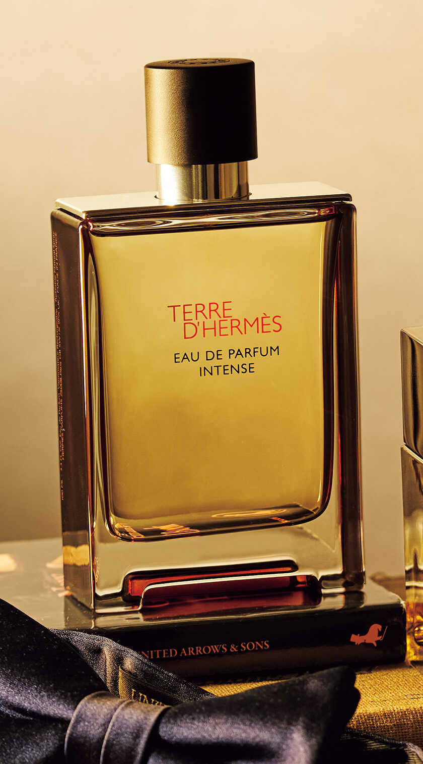 弾けるような爽やかさに、ほのかな甘さとほろ苦さが入り混じったベルガモットが看板。そこにバーニングウッドのスモーキーで官能的な印象とラバストーン=溶岩石のミネラル感が溶け合い、情熱的かつ紳士的なムードを描く。100㎖2万460円(エルメス/エルメスジャポン)