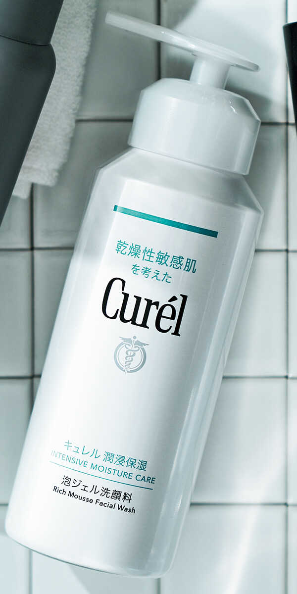 ジェルに変化するテクスチャーで、肌を擦らず優しく洗えるのが特徴。肌の主要な保湿・バリア成分セラミドを守りつつ、炭酸泡が皮脂汚れに浸透しゆるめながら浮かせて洗い落とし、透明感のある素肌印象に。200g医薬部外品。実勢価格2090円※編集部調べ(キュレル/花王)