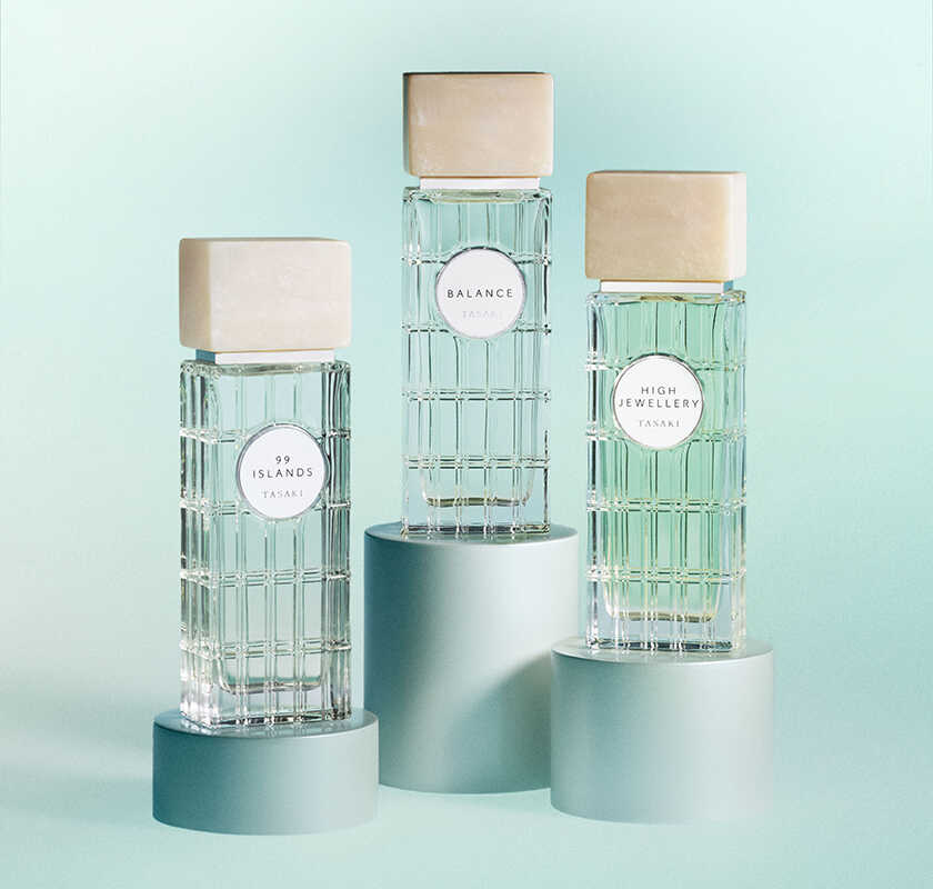 左:“99 ISLANDS” 20㎖ 2万2000円、75㎖ 3万3000円(タサキ/タサキ) 中:“BALANCE” 20㎖ 2万2000円、75㎖ 3万3000円(タサキ/タサキ) 右:“HIGH JEWELLERY” 20㎖ 2万2000円、75㎖ 3万3000円(タサキ/タサキ)