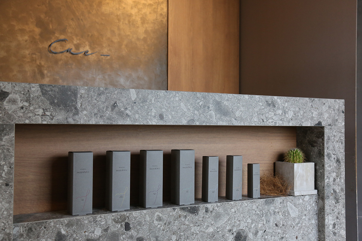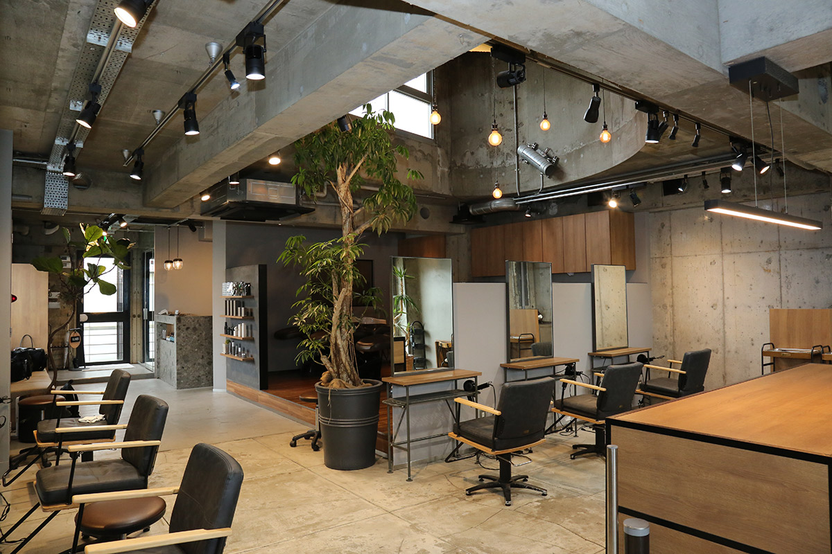 Check1店内は無機と有機が調和する開放感のある癒しの空間。