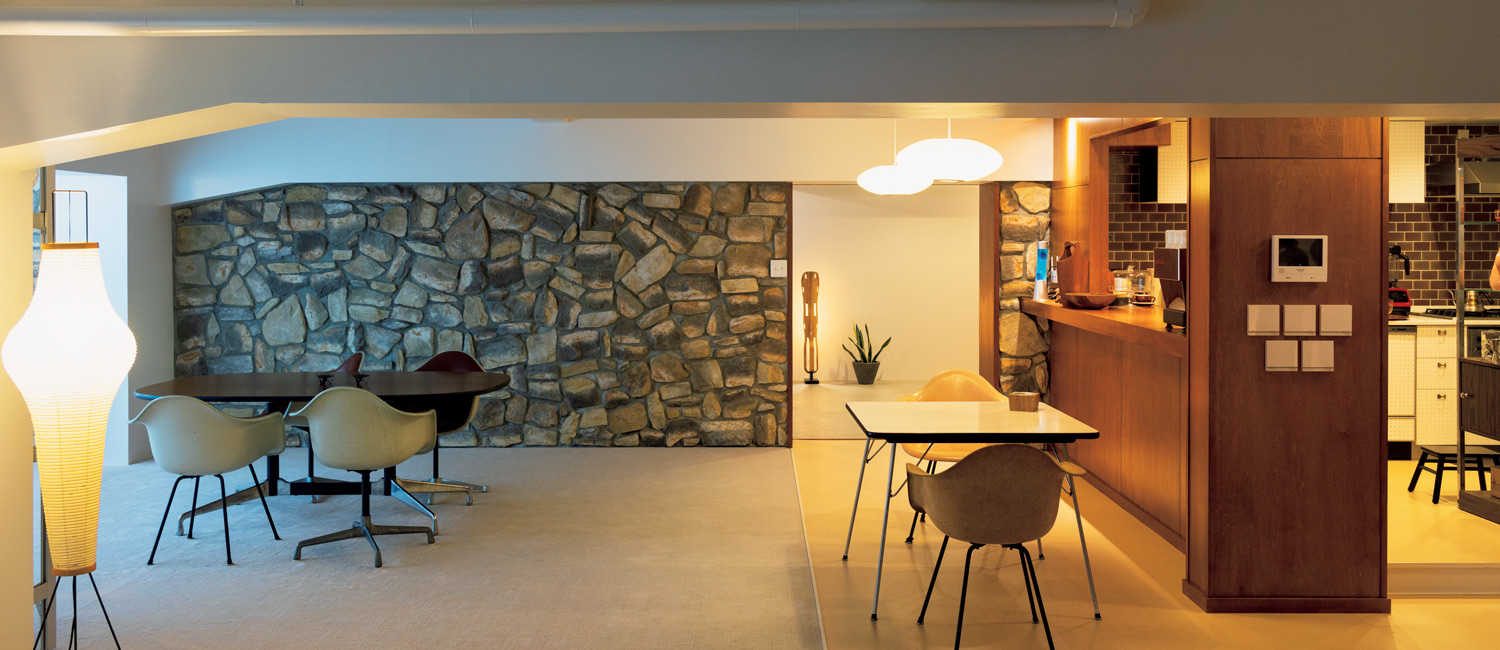 1968年築のヴィンテージマンション4戸分をスケルトンにして再構築した住まい。低い天井と大きな窓からの自然光が生む陰影、柔らかなフォルムと硬質な素材使いなど美しい対比が際立つ。ミッドセンチュリーの家具の洗練と時間が醸成したこなれ感を味方に…