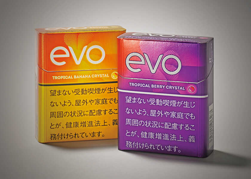 ご存知の人も多いかもしれないが、〈エボ〉はJTの厳しい品質基準を満たした最高級品質のたばこ葉が持つ繊細かつ力強い香味を味わえる加熱式たばこ専用のプレミアムブランド。新発売の2銘柄を含む5銘柄は、いずれもたばこ葉の配合を見直し、密度を高めた新ブレンドで、たばこ葉の喫味成分を余すことなく抽出する“スマート ヒートフロー”技術とのコンビネーションでたばこ本来の味と吸いごたえが最初から最後まで楽しめる。加えて特筆すべきは、“エボ・トロピカル・ベリー・クリスタル”や“エボ・トロピカル・バナナ・クリスタル”といった新鮮味のあるフレーバーの銘柄がお目見えしたこと。前者は、完熟マンゴーのフレーバーとカプセルの濃くも瑞々しいベリーの甘さが特徴的。これに対し後者は、完熟マンゴーのフレーバーとカプセルのミルキーでクリーミーなバナナの甘さを楽しめ、双方ともカプセルをつぶすとふたつの果実の甘さが絶妙に調和した味わいが口の中に広がるのもポイントだ。これらに加え、レギュラー、メンソール、ベリーといった3銘柄を気分で選べる選択肢の豊富さも嬉しい。これでもう最高の休憩は約束されたも同然!?