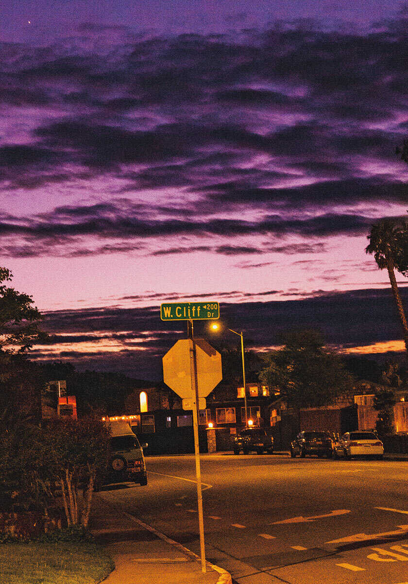 モントレーの海岸線を走っている最中に捉えた光景。空が紫色に染まり幻想的な景色が広がる。