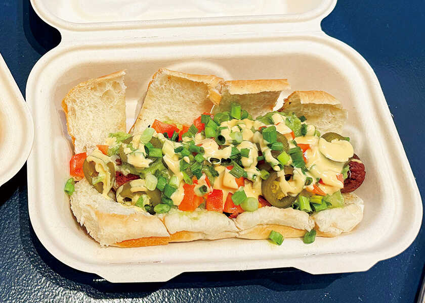 特製ソーセージにトマト、ハラペーニョ、ネギをトッピングし、自家製ソースでまとめた“ラバーズ・ポイント”。