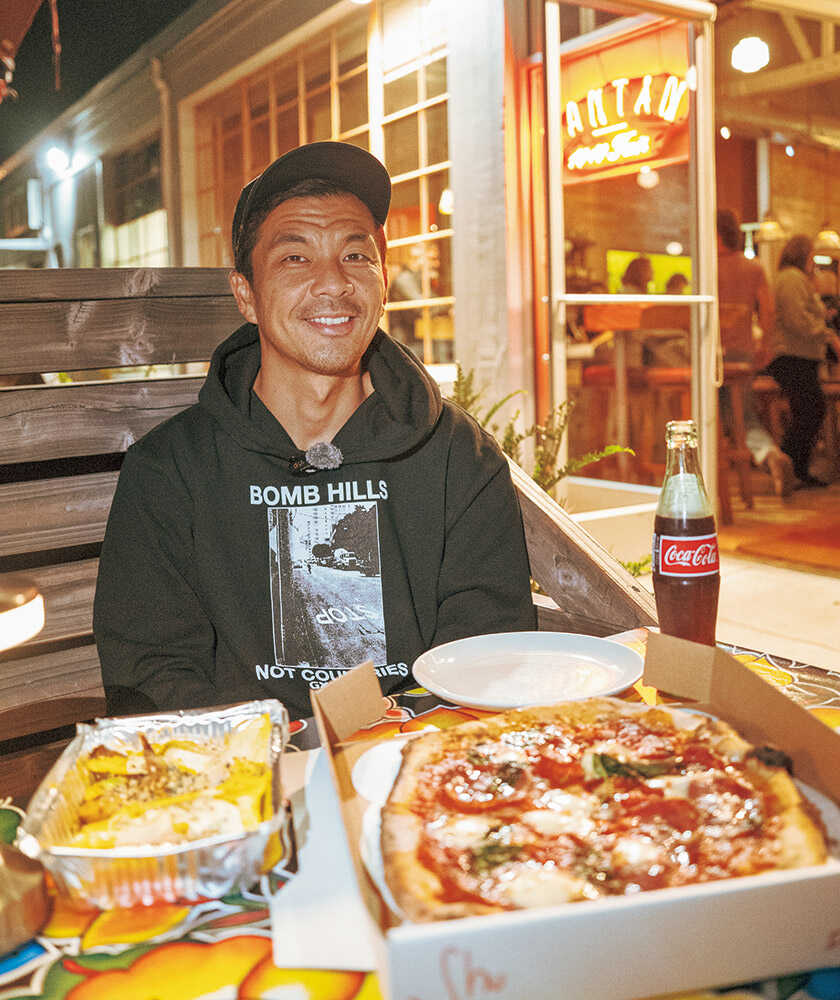テラス席で楽しんだのは、オーセンティックな“マルゲリータ”。17~21時のコンパクトな営業スタイルだが、多くの人で賑わっている。