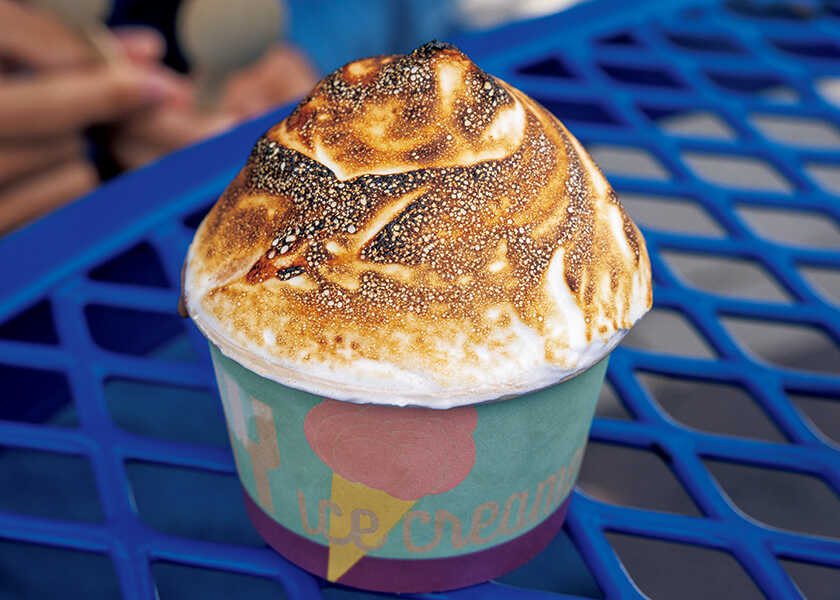 トッピングのフラフ(マシュマロをクリーム状にしたペースト)は表面を炙り、外カリッ中フワッの絶妙な食感!