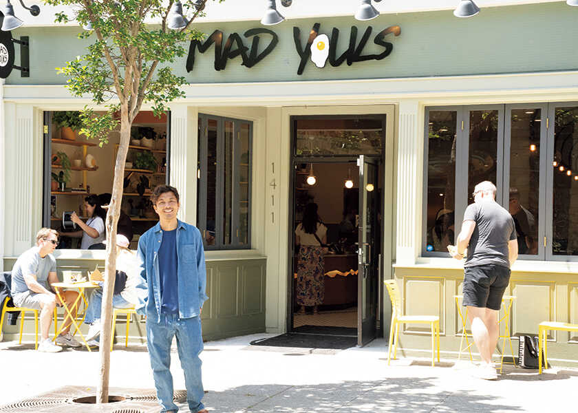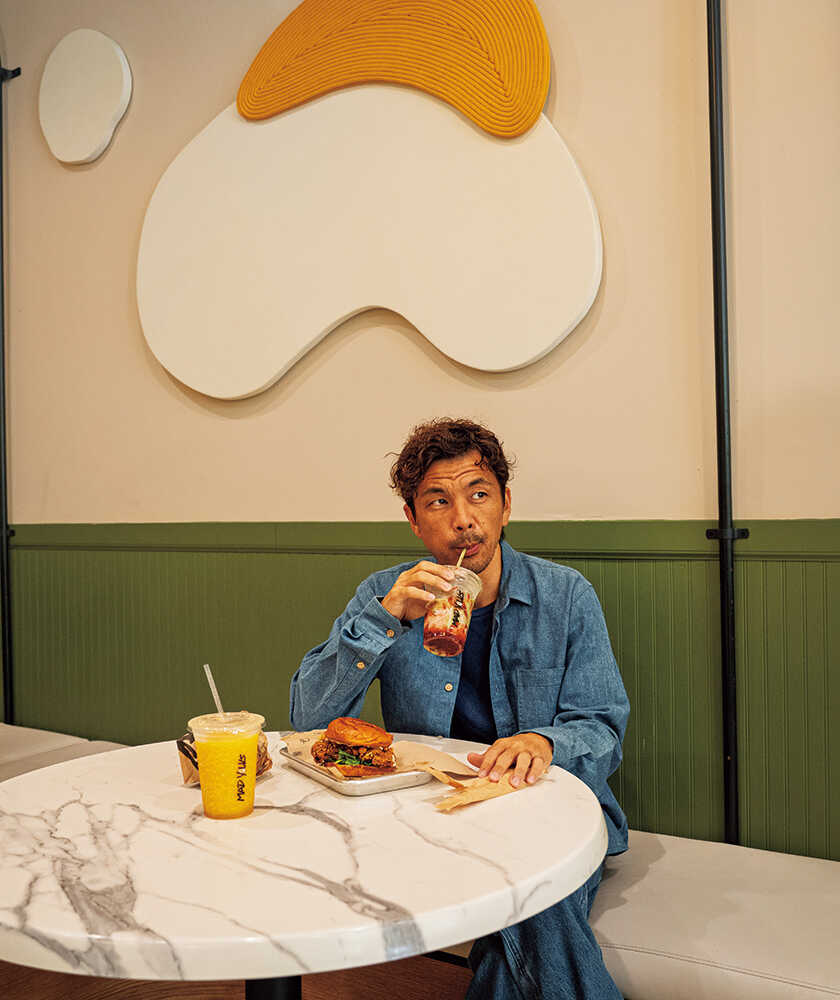 店内もカリフォルニアらしい遊び心満載。フライドチキンに半熟たまご、ピクルドキャベツなどを自家製ブリオッシュバンズで挟んだ“マッド・チック”を注文!