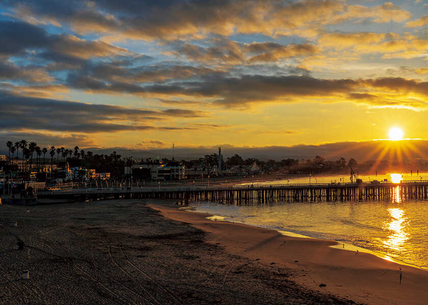 西海岸で最も長い木製の埠頭“サンタクルーズ・ワーフ”越しに沈みゆく夕日は幻想的。