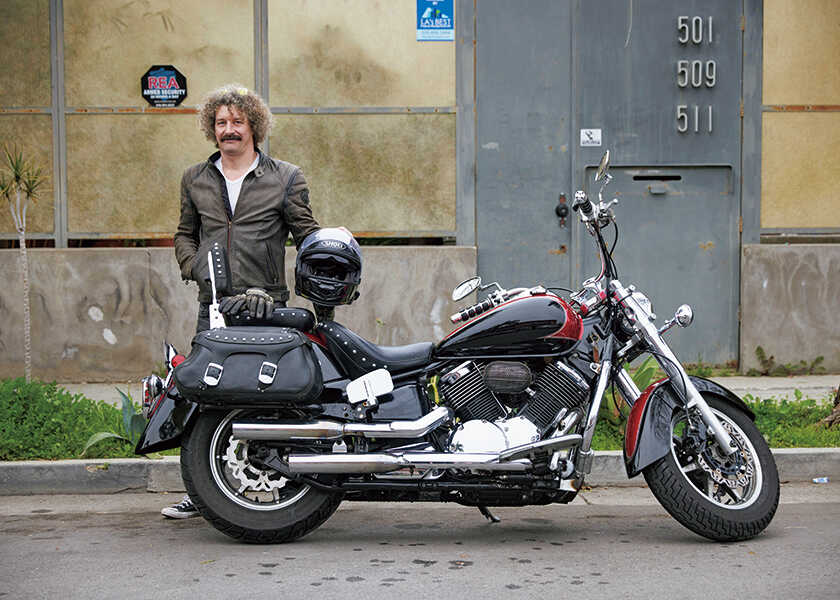 7年前にLAへ移住してからはヴィンテージのモーターサイクルに魅了され、2年にわたるリサーチの末、アメリカンタイプとして人気の高い〈ヤマハ〉Vスター 1100 シルバラードをセレクトした。「迫力のあるワイルドなデザインと、パワフルな走りが気に入って購入を決めたんだ」と笑顔で語る。威厳を感じさせながらも大きすぎないボディサイズと、ちょうどいいシート高も決め手になったという。