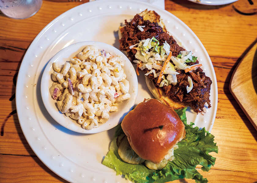 細かくほぐしたポークをバーベキューソースで味つけし、コールスローを添えた“BBQプルドポークサンド”を注文!