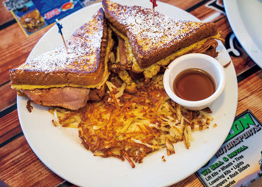 フレンチトースト風のパンに、ハムやターキー、チーズをサンドした“モンテクリスト”は、塩味と甘味のバランスが絶妙。