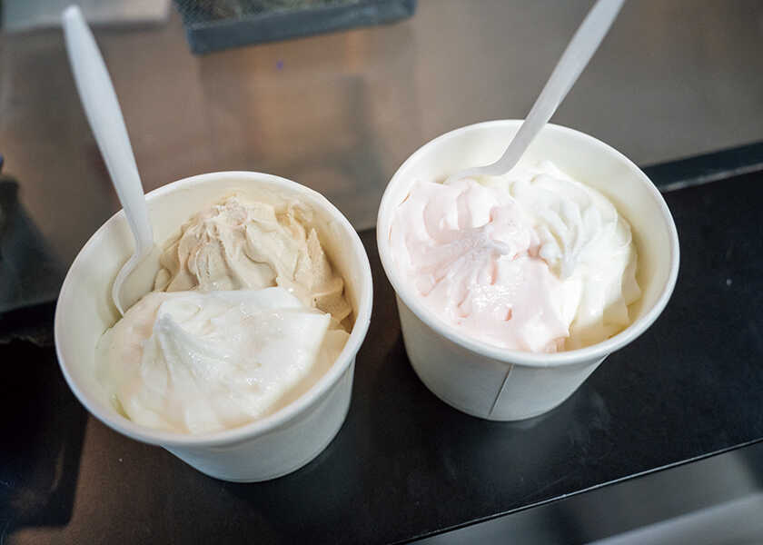 アイスは乳製品不使用で、フローズンヨーグルトは最先端の高出力・高圧マシンで製造するこだわり。